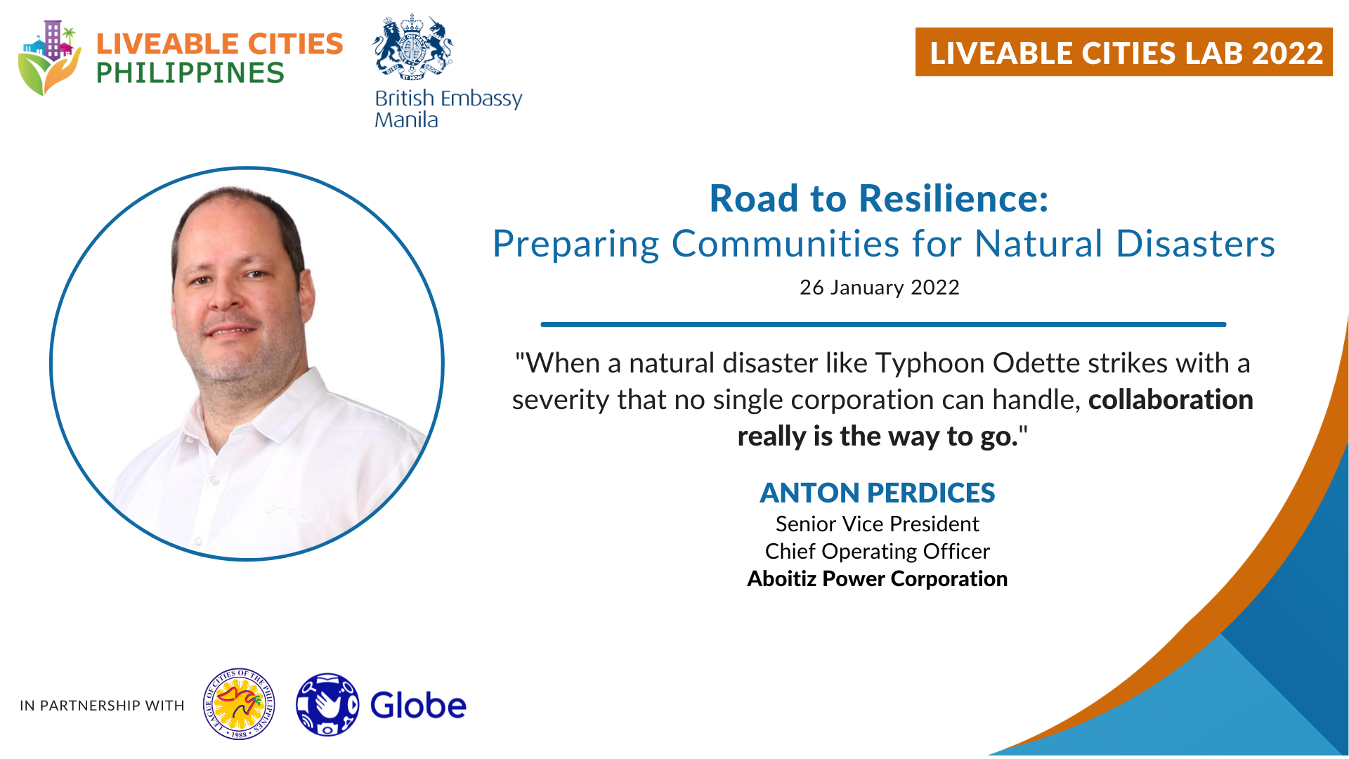 With the Philippines' recent experience on Supertyphoon Odette, this Liveable Cities Lab on Resilience addressed the necessary measures and preparation that cities need to consider to build resilience against similar storms in the future. Humanitarian and utility experts presented their short-term and long-term relief efforts and emergency responses to offer basic service resilience.